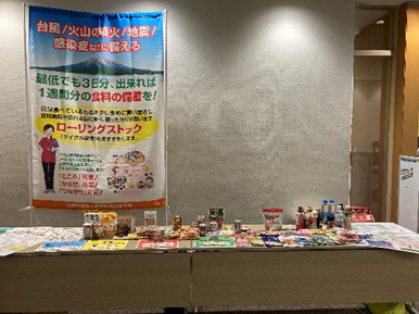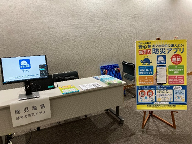 また、会場入口では、鹿児島県栄養士会による様々な非常食の展示や、鹿児島県原子力安全対策課による原子力防災アプリの紹介が行われており、来場者は熱心に見学されていました。