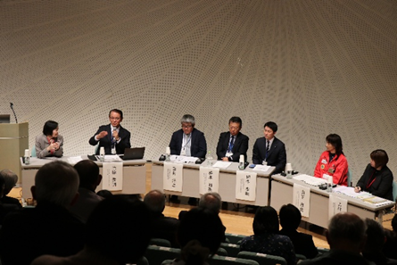 第2部のパネルディスカッションでは、本センター防災教育部門長の松成裕子教授(医歯学域医学系)がコーディネーターを務め、「多職種連携に挑む」をテーマに、医療関係の講演者6名をパネリストに、多職種連携を推進するためのポイントについて議論されました。参加者からは、避難所での要配慮者支援の留意点、隣県との連携の現状、火山噴火への備えで特に気を付けることなど、多くの質問が寄せられ、講演者らが回答しました。